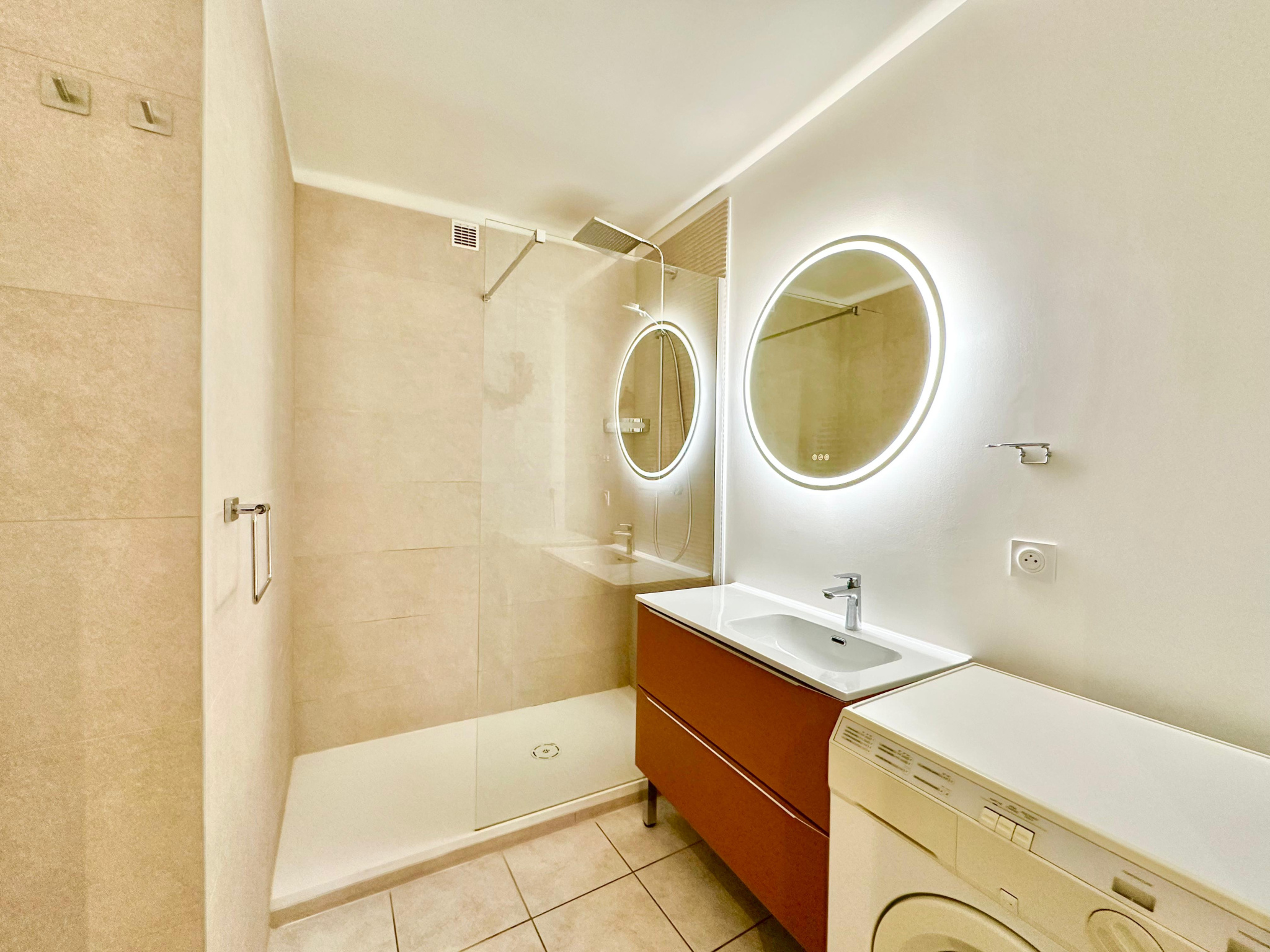 L’appartement dispose également d’une salle de douche séparée ainsi que d’un WC indépendant, apportant un confort supplémentaire au quotidien.