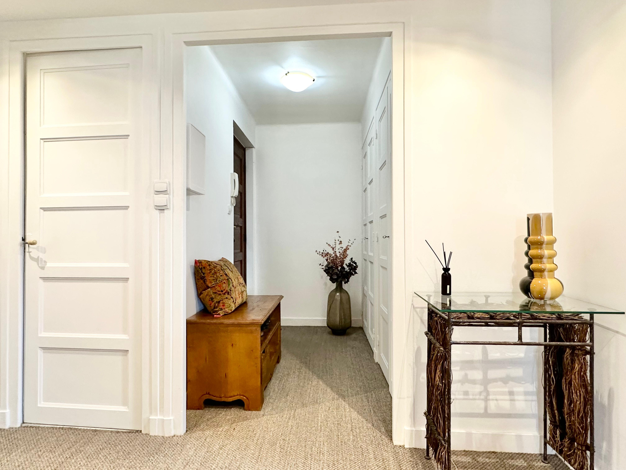 L’entrée s’ouvre sur un bel espace avec rangements, distribuant la partie nuit composée de deux très belles chambres aux beaux volumes, ainsi qu’un espace cuisine ouvert sur le salon-séjour, créant un ensemble convivial et agréable à vivre.