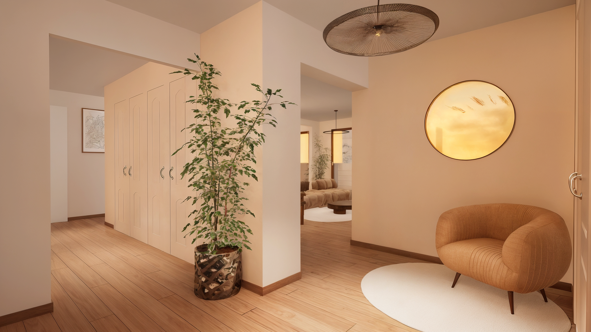 L’appartement se compose de la façon suivante : Un spacieux hall d’entrée menant à un grand séjour très lumineux, ouvert sur un large balcon.