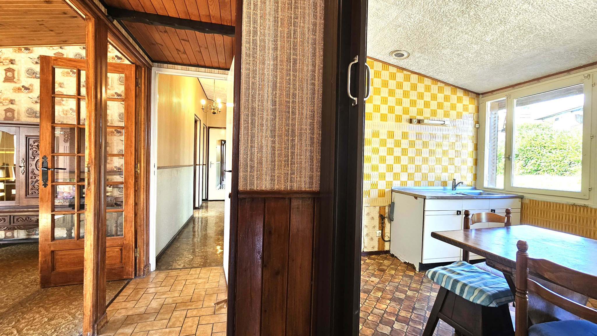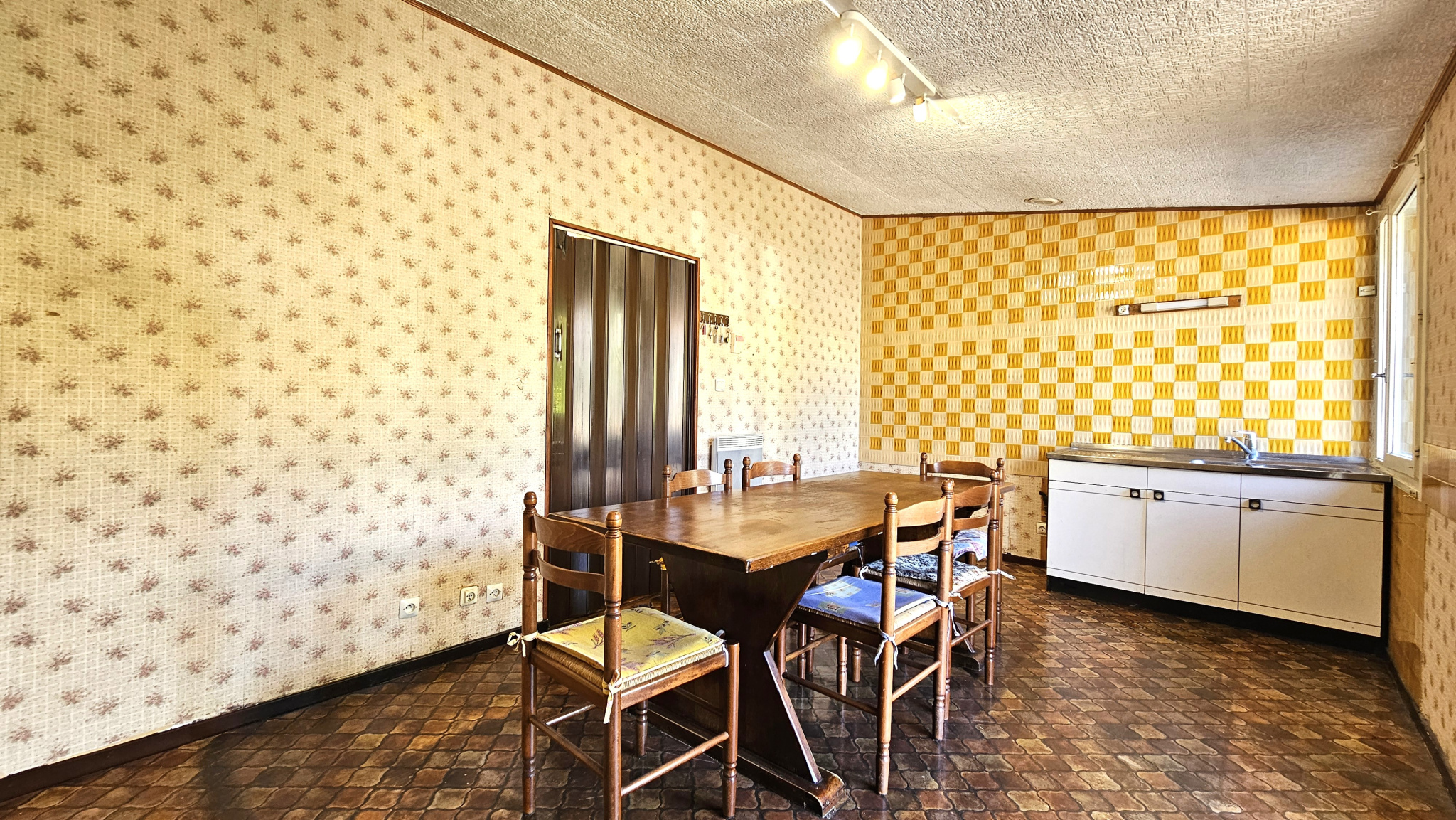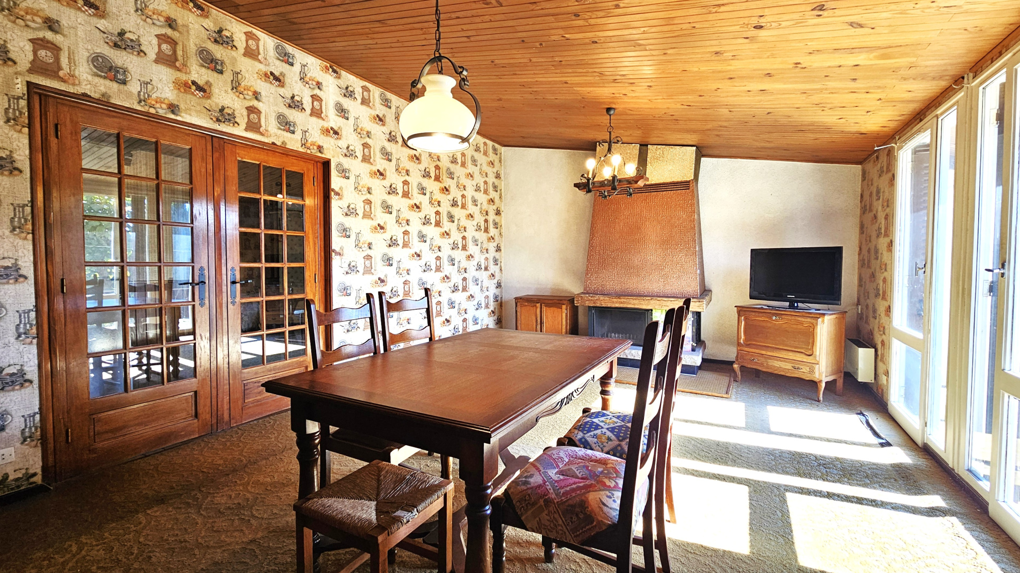 Annexes et extérieurs : garage attenant avec cave (22 m2), deux cabanons de jardin, grande terrasse, cour permettant de stationner 4 véhicules. Vue dégagée, sans vis-à-vis.