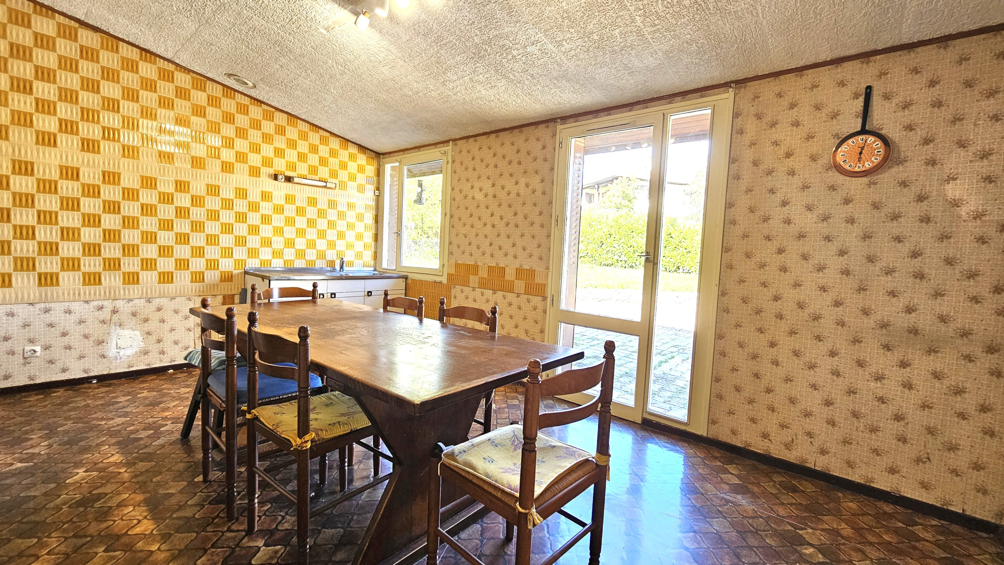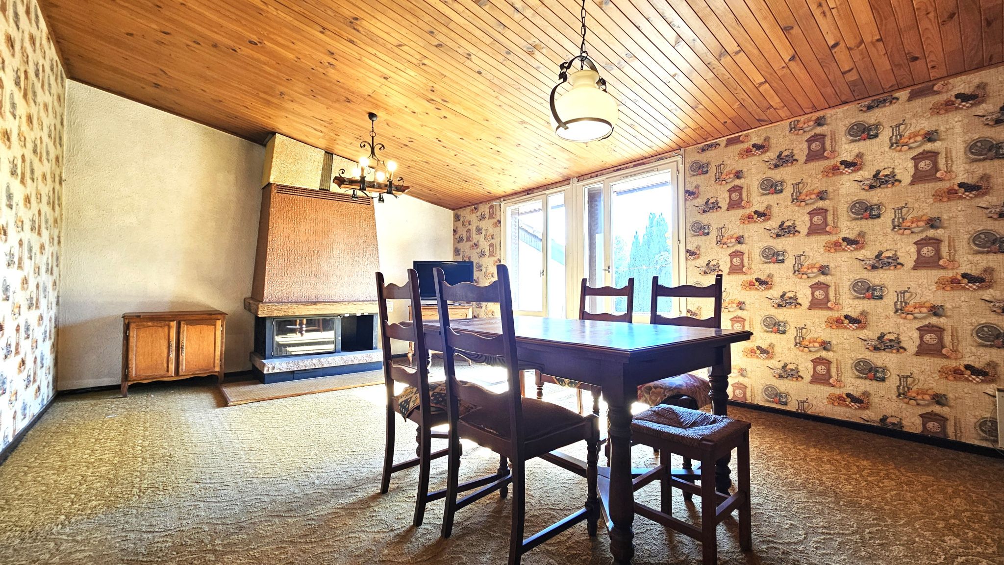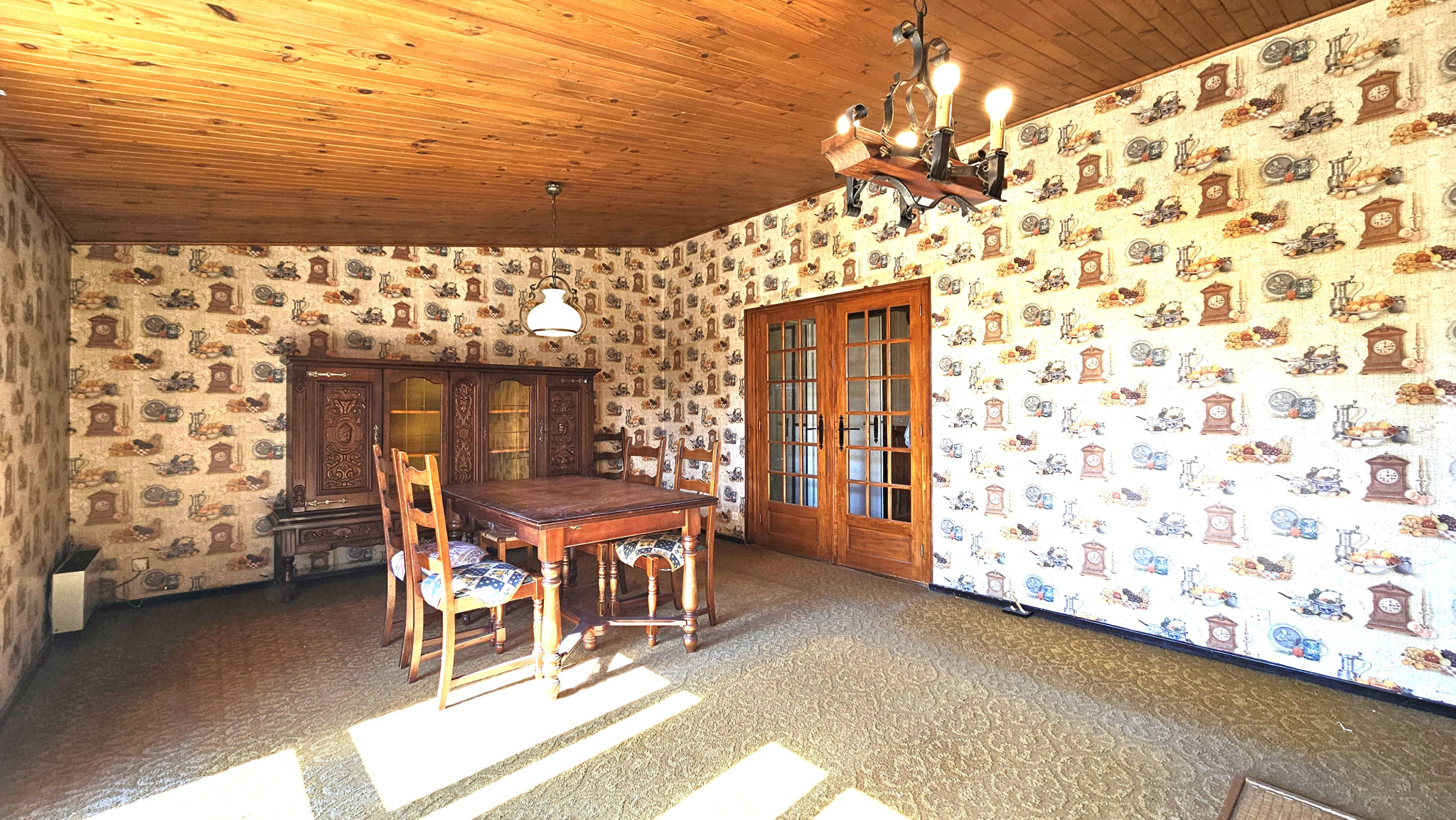 Annexes et extérieurs : garage attenant avec cave (22 m2), deux cabanons de jardin, grande terrasse, cour permettant de stationner 4 véhicules. Vue dégagée, sans vis-à-vis.