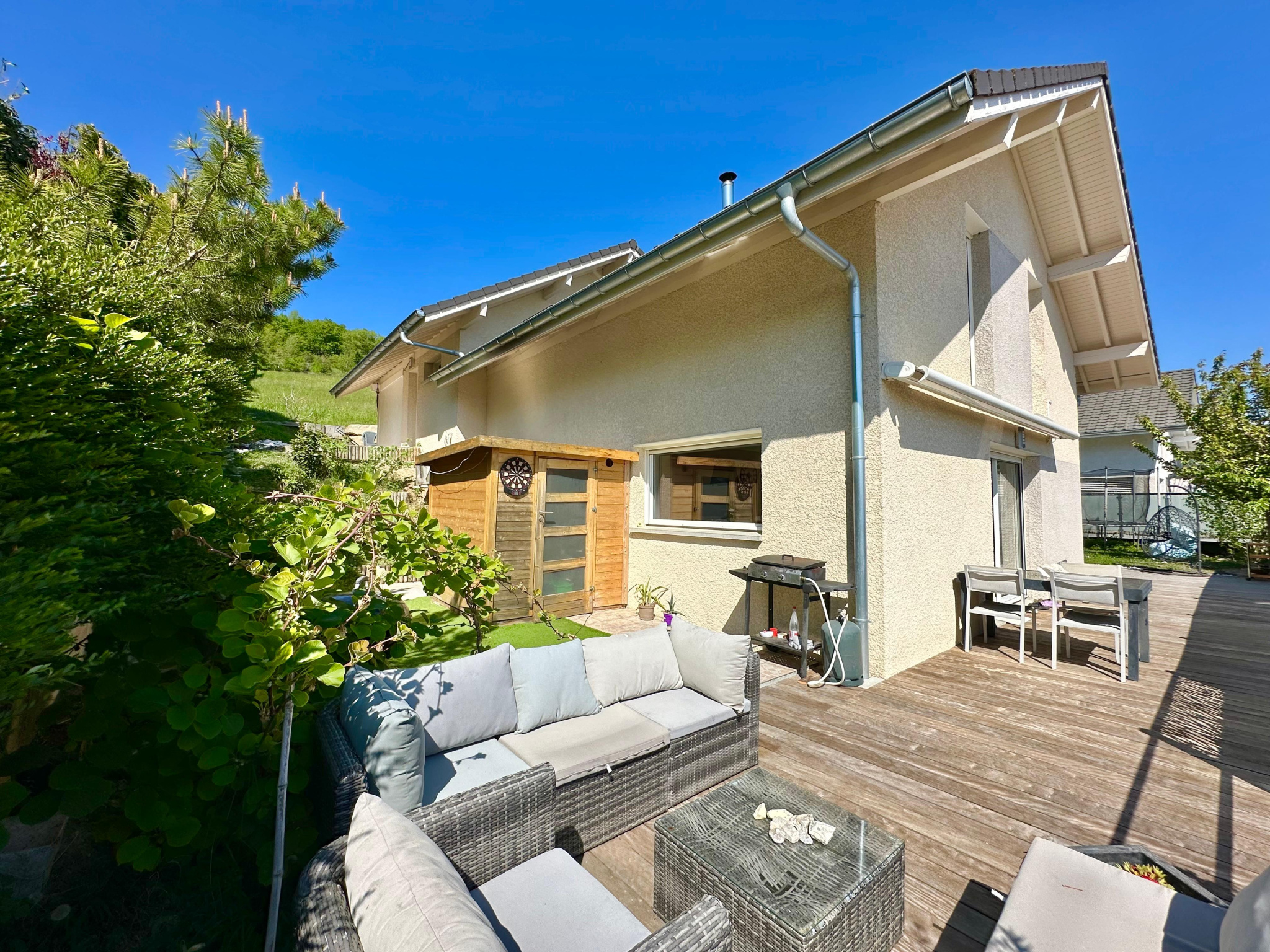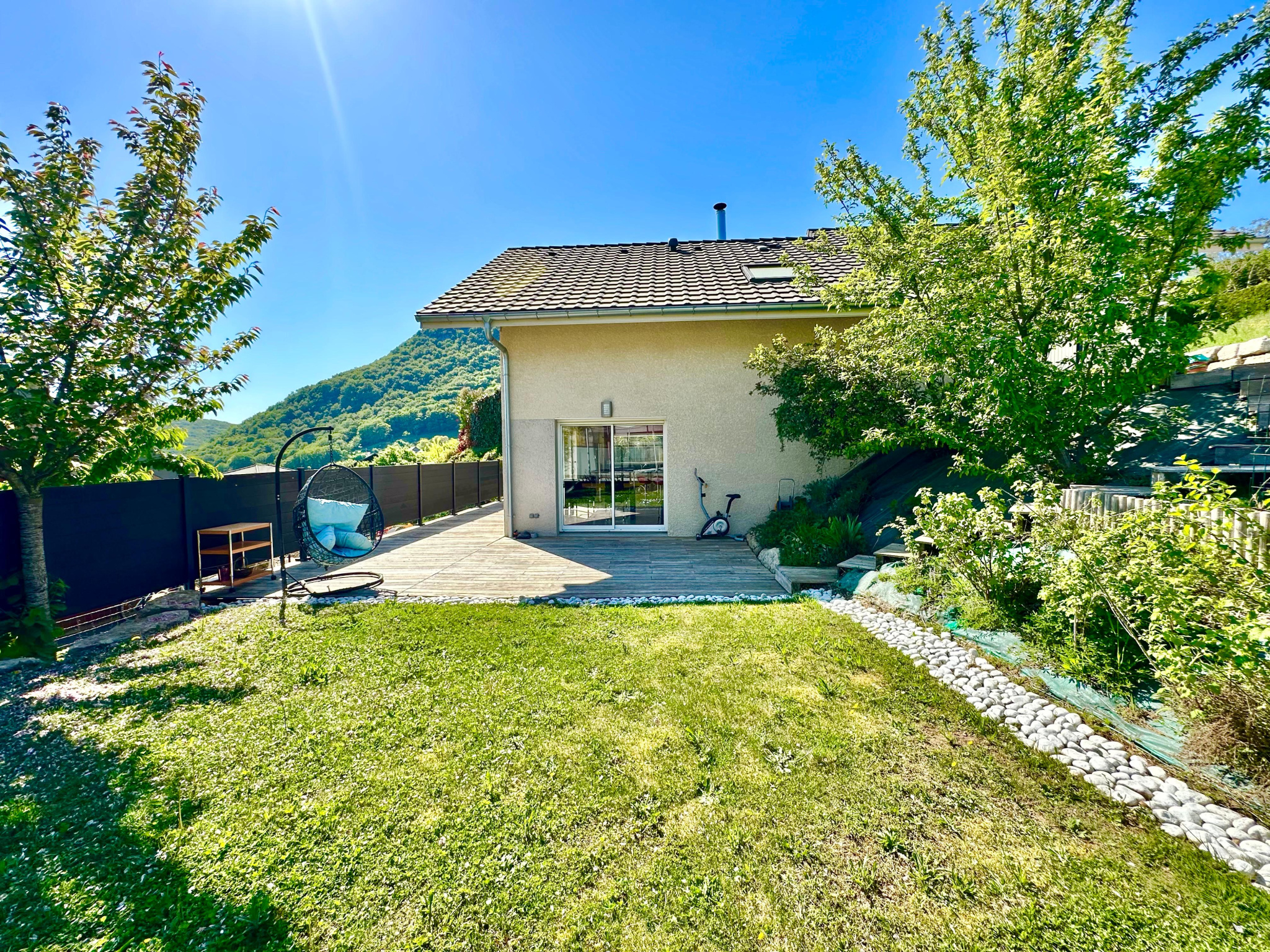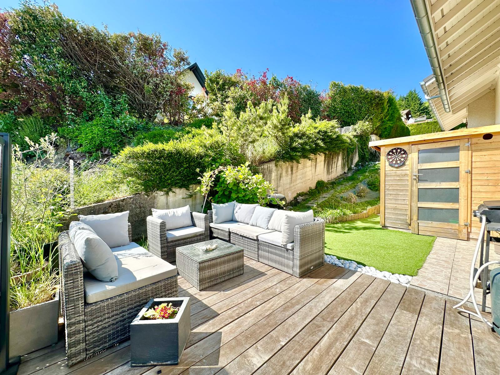 Située aux portes d’Annecy, dans un environnement calme et résidentiel au fond d’une impasse, cette villa contemporaine de 2018 offre un cadre de vie agréable entre nature et proximité des commodités, avec une belle vue dégagée.