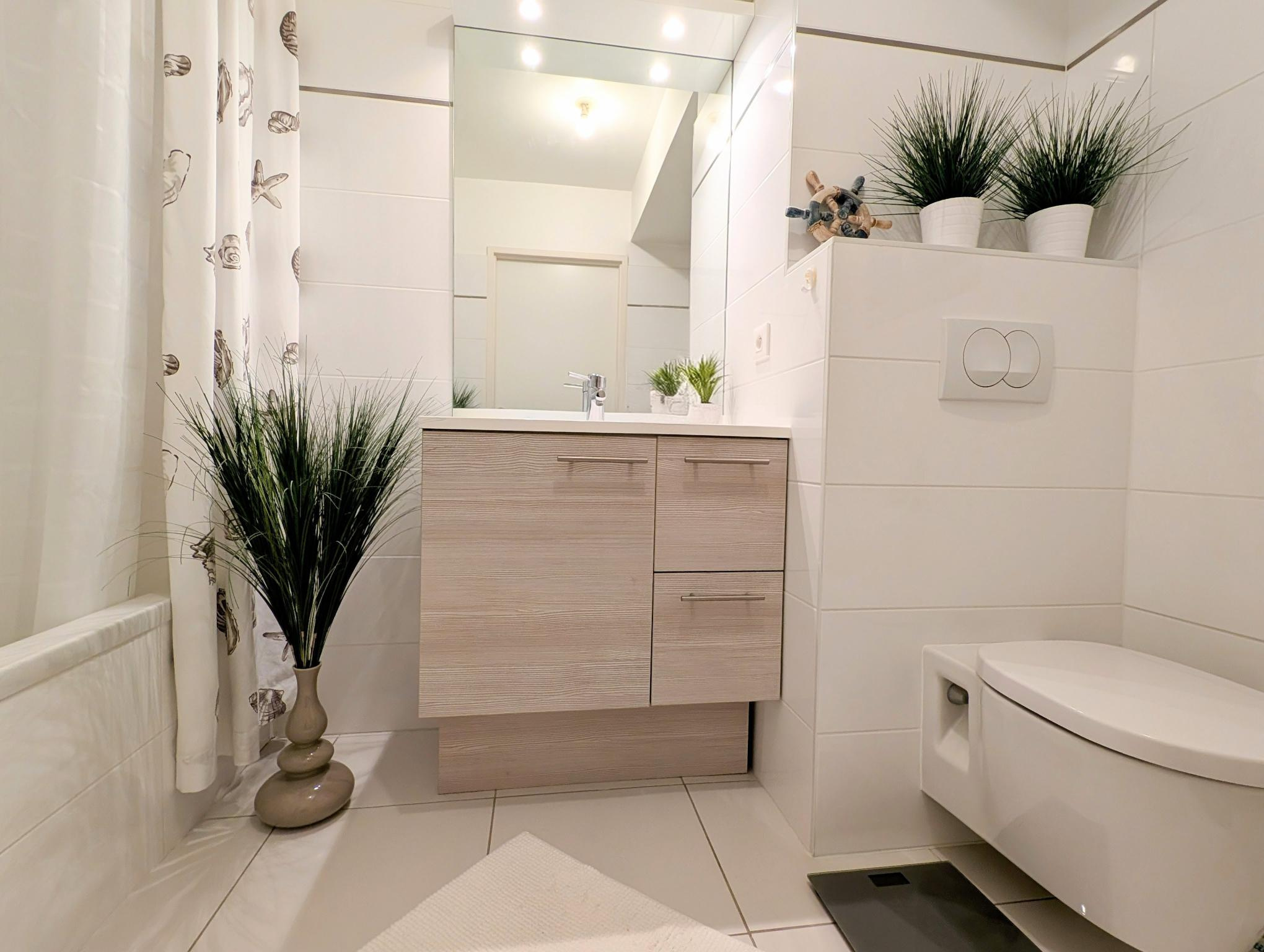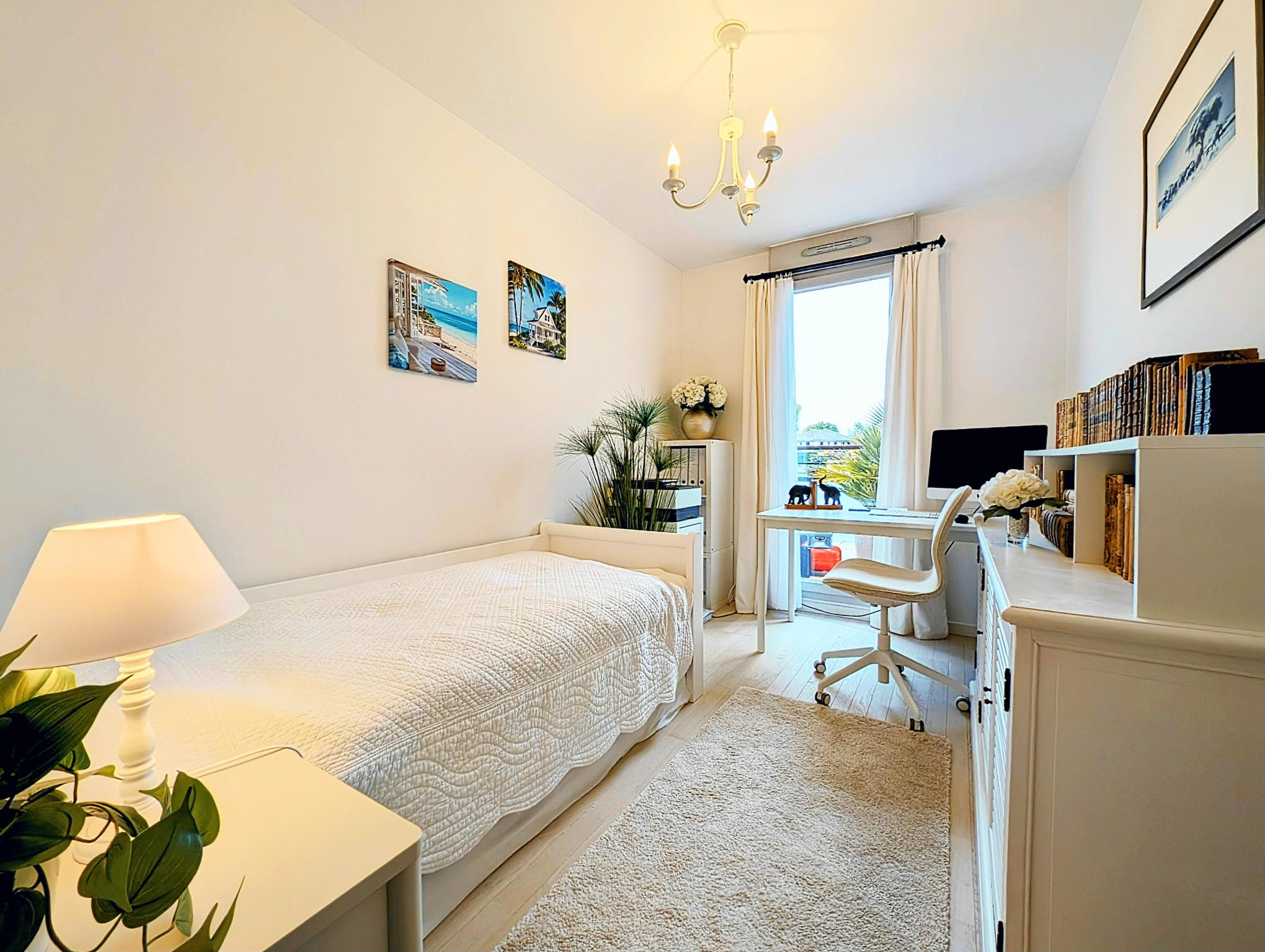 Dès l’entrée, vous apprécierez son exposition plein Sud-Ouest, offrant une luminosité naturelle du matin au soir et une atmosphère paisible. L’espace de vie comprend une cuisine italienne haut de gamme Veneta Cucina (installée en 2022) ouverte sur un séjour lumineux, prolongé par un balcon de 10 m2 donnant sur les espaces verts de la copropriété. La partie nuit se compose de deux chambres et d’une salle de bain fonctionnelle avec WC.Des prestations soignées complètent l’ensemble : parquet en bois massif lasuré, fibre optique, VMC simple flux.