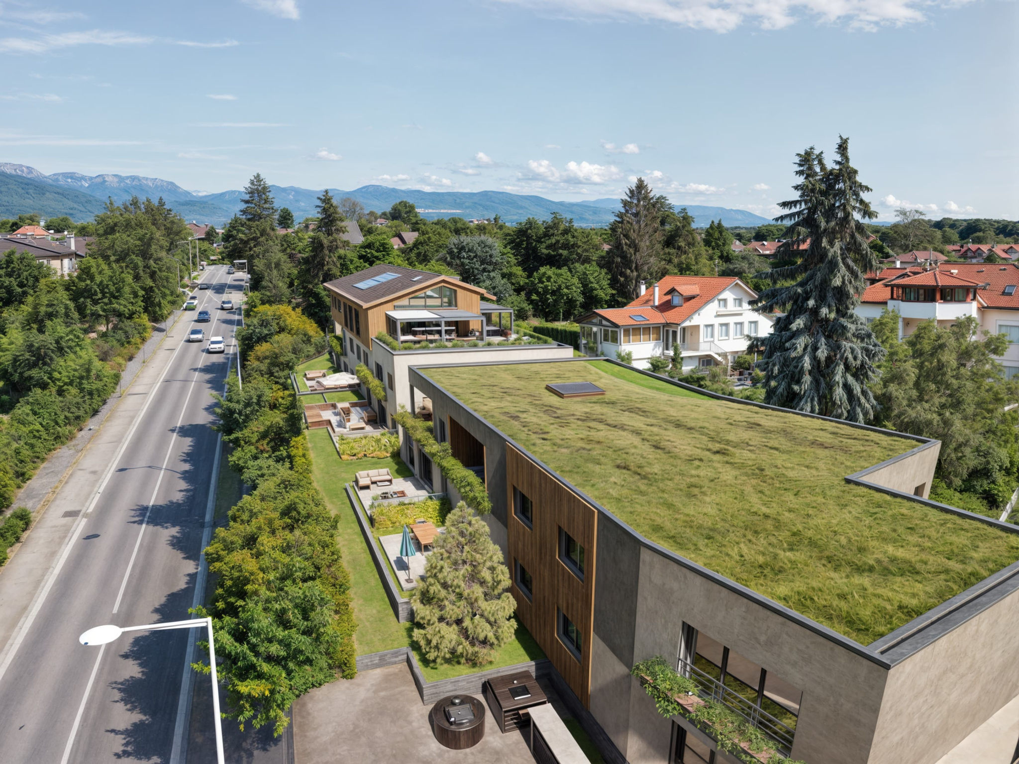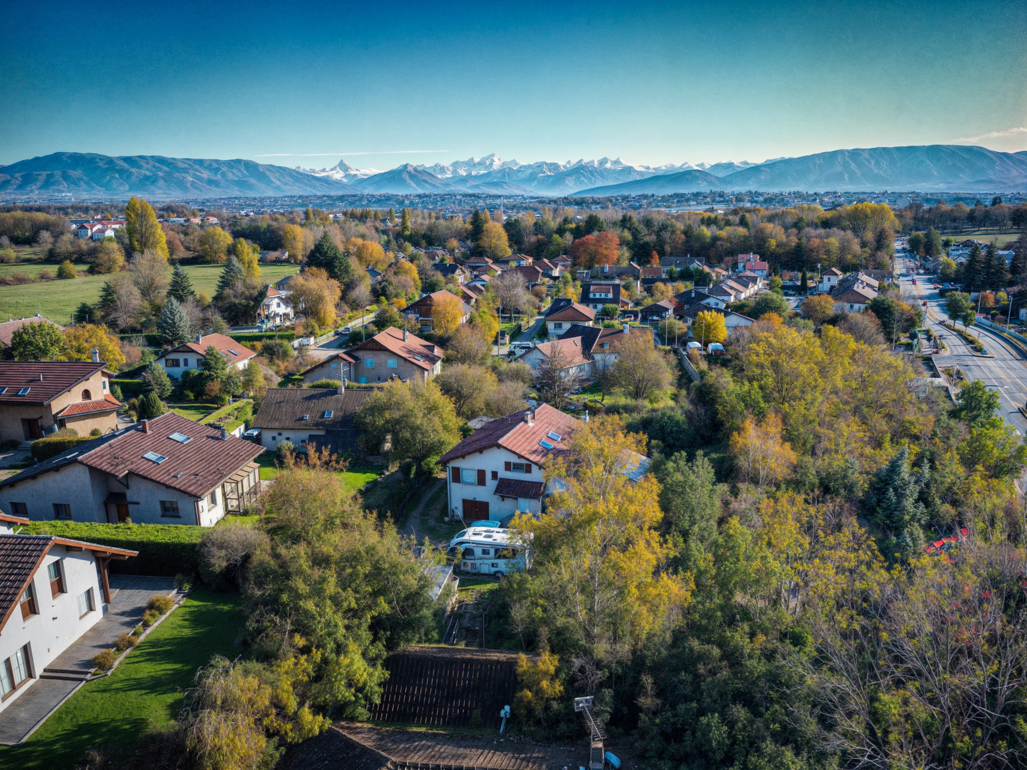 Environnement privilégié : Quartier résidentiel avec une vue dégagée sur les montagnes et le Mont Blanc, entouré d'espaces verts et de parcs, offrant un panorama exceptionnel