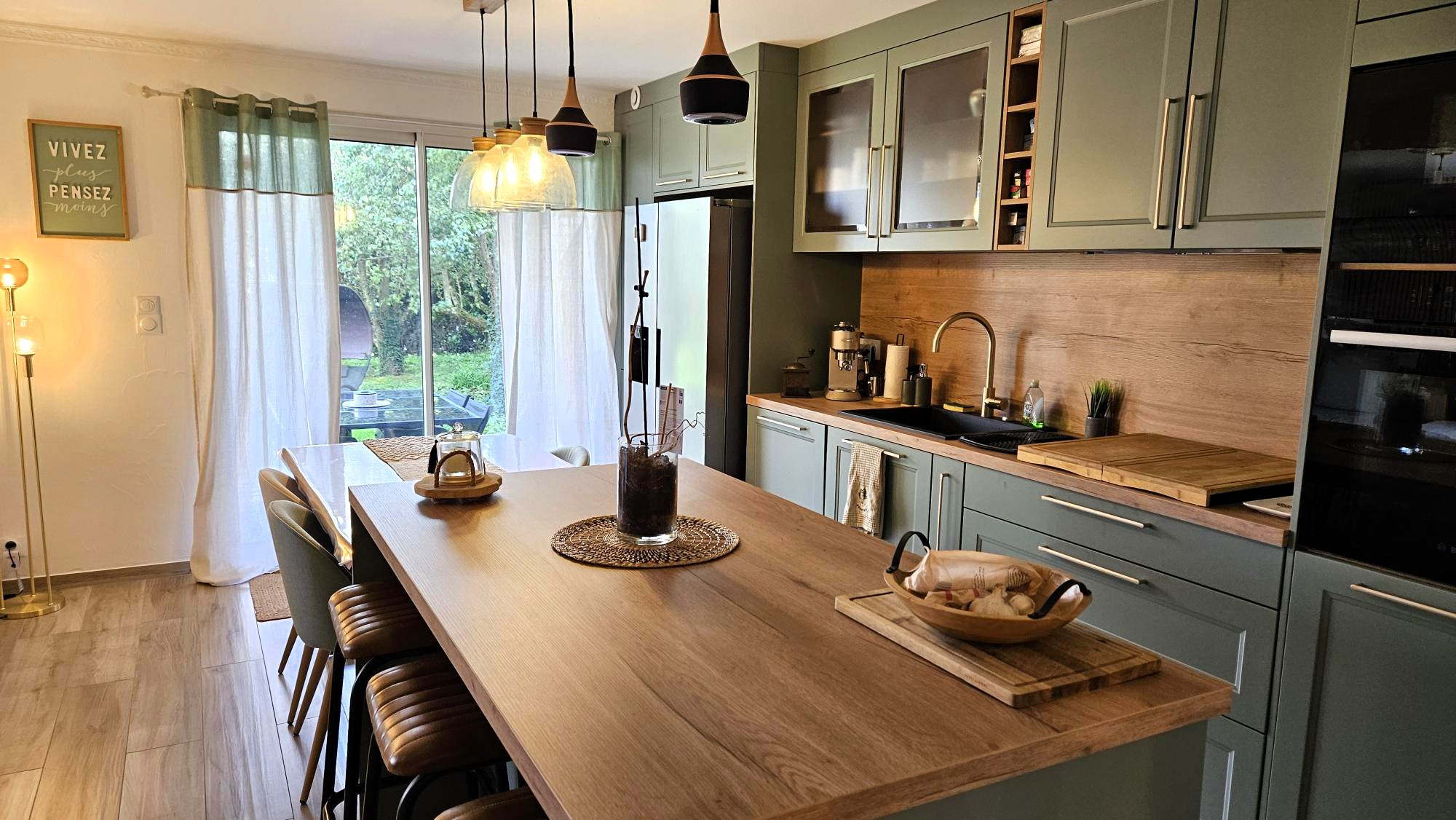 À vendre, bel appartement T3 en rez-de-jardin, entièrement rénové avec beaucoup de goût, avec terrasse, jardin et 2 places de parking
