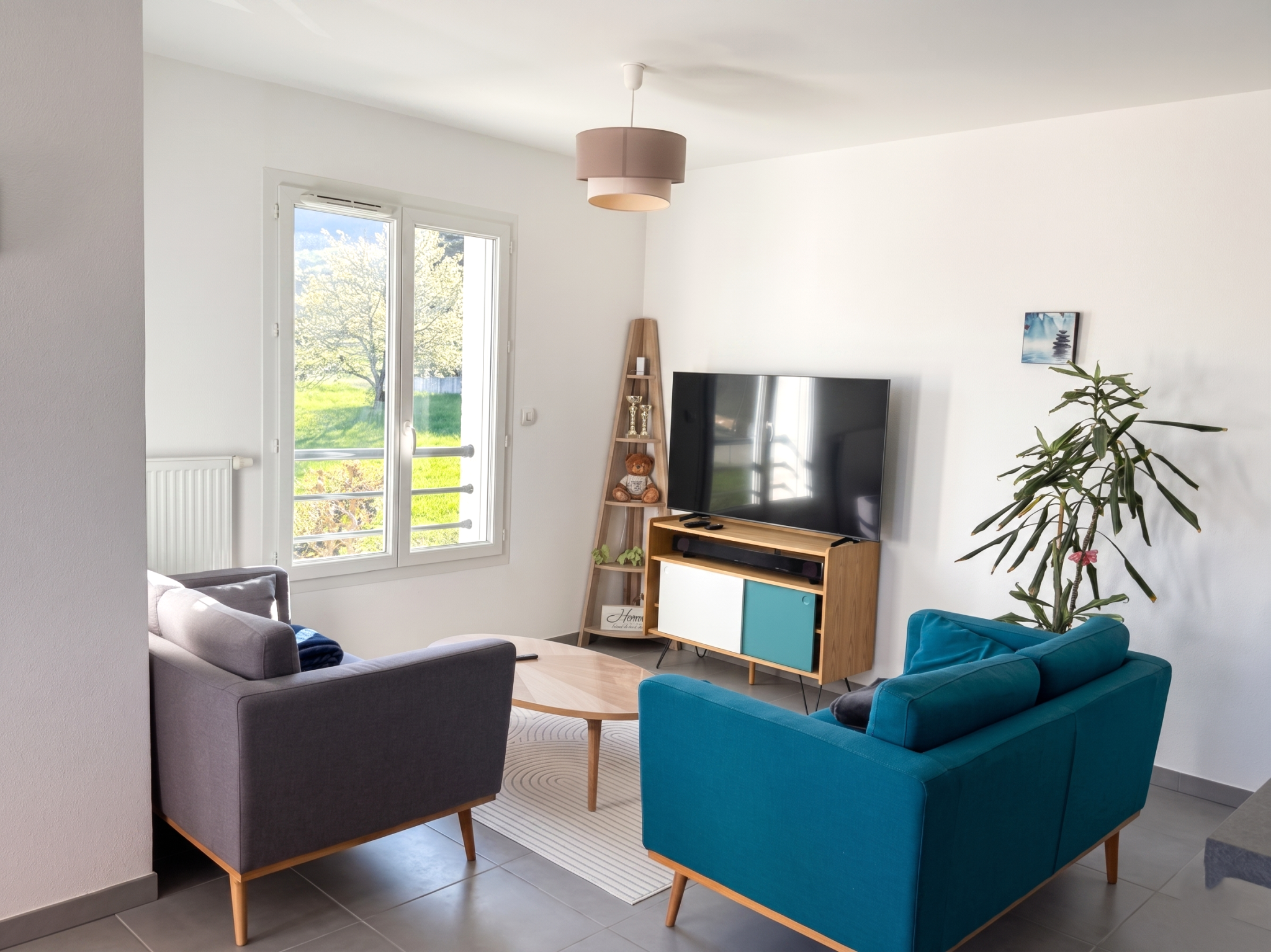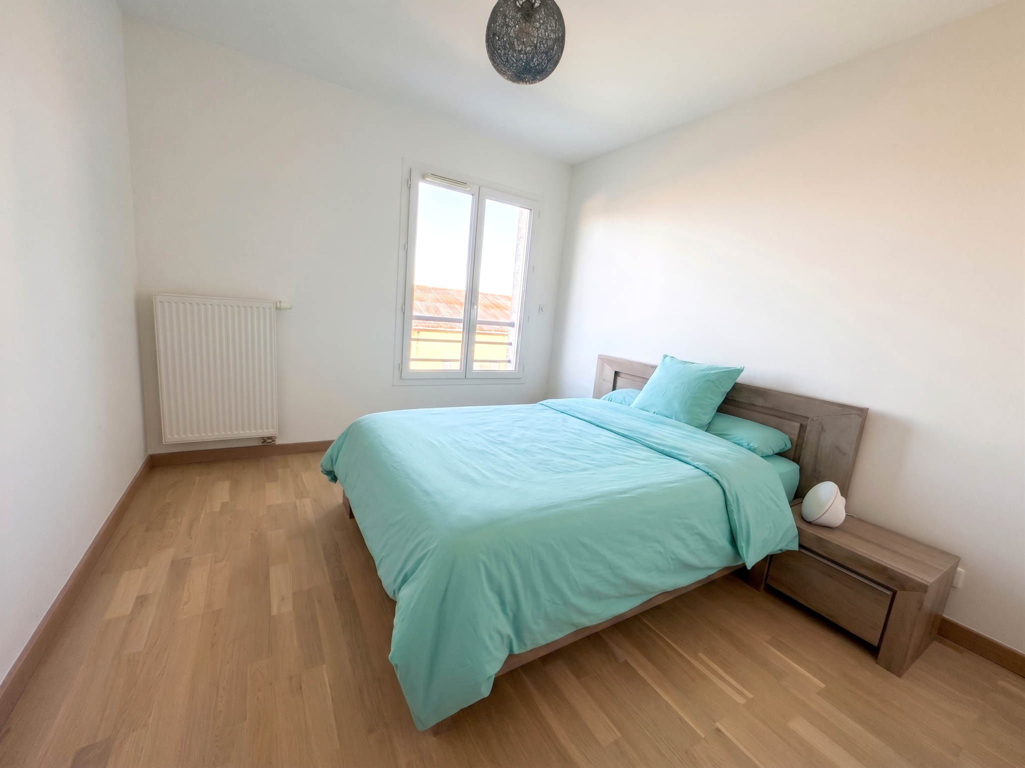 Situé au premier étage d'une résidence de standing édifiée en 2015, cet appartement de type T3 se distingue par une pièce de vie spacieuse et baignée de lumière de près de 40 m2. Cet espace convivial, incluant séjour et cuisine, s'ouvre directement sur un balcon de 7,70 m2. Le coin nuit se compose de deux chambres confortables de 10,80 m2 et 11,60 m2, accompagnées d'une salle de bains et de WC indépendants.