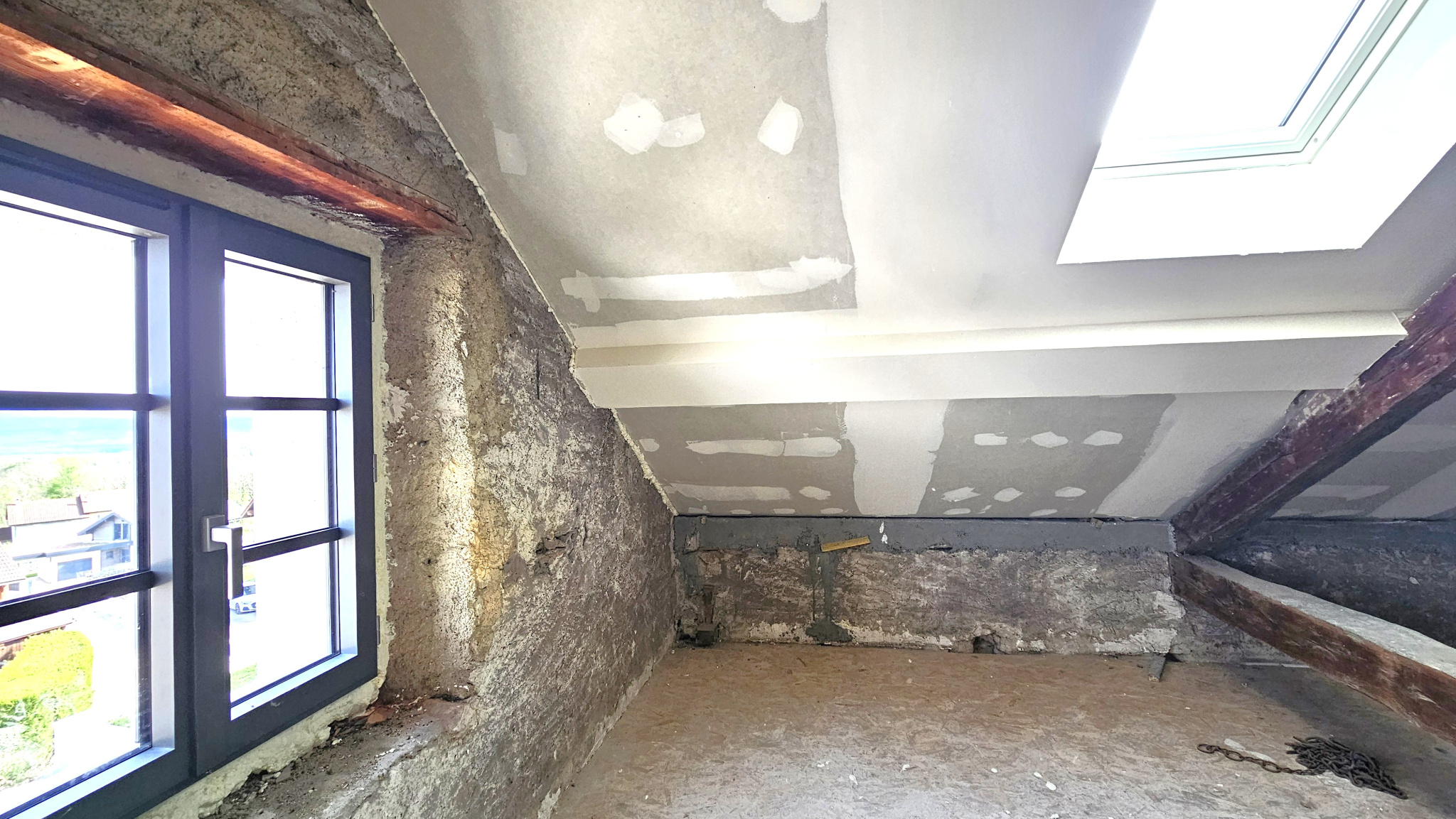 À l’extérieur, une terrasse d’environ 28 m2 exposée plein sud peut être créée. L’accès enrobé est compris dans le prix, ainsi que deux places de stationnement extérieures.