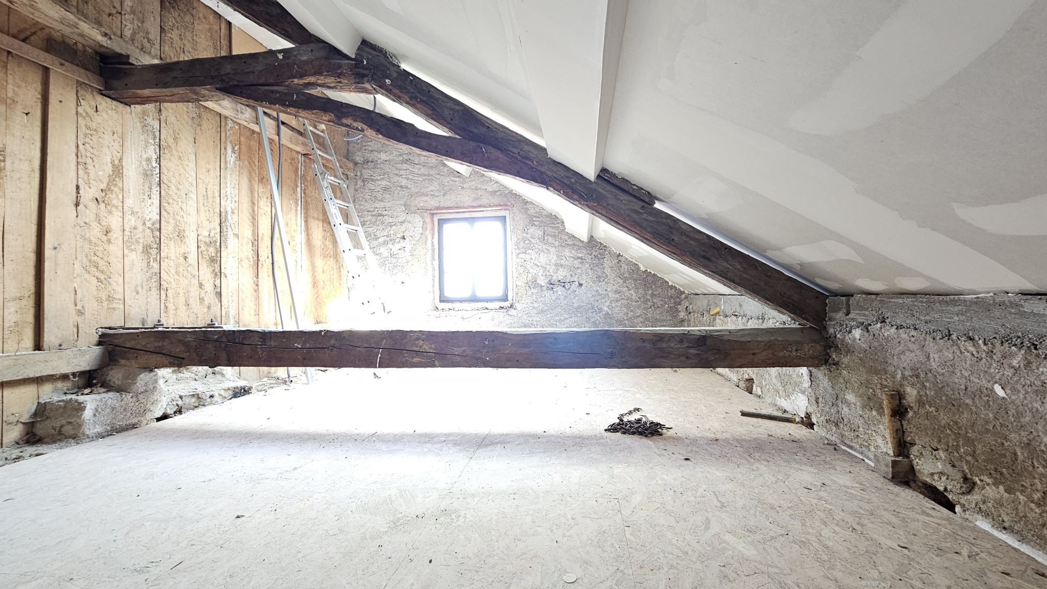 La rénovation lourde comprend la reprise des planchers, le remplacement des escaliers, une toiture neuve avec isolation des combles, une façade refaite, des menuiseries et volets en aluminium ainsi que des réseaux et une plomberie entièrement refaits. Des travaux de second œuvre restent à réaliser (devis sur demande).