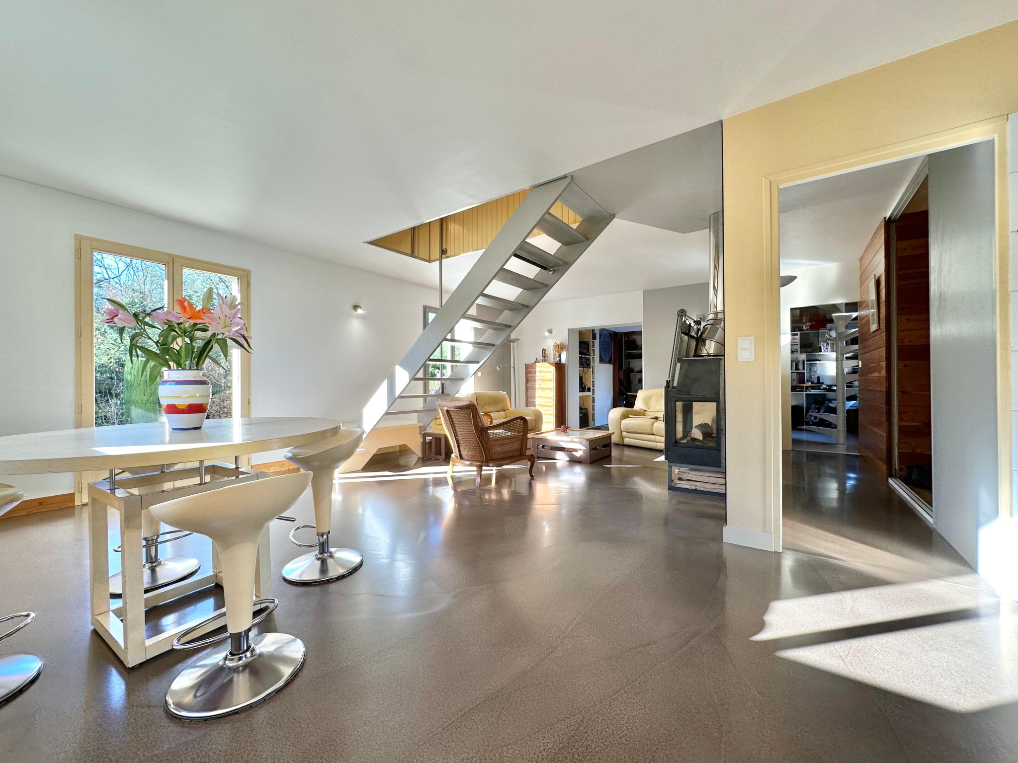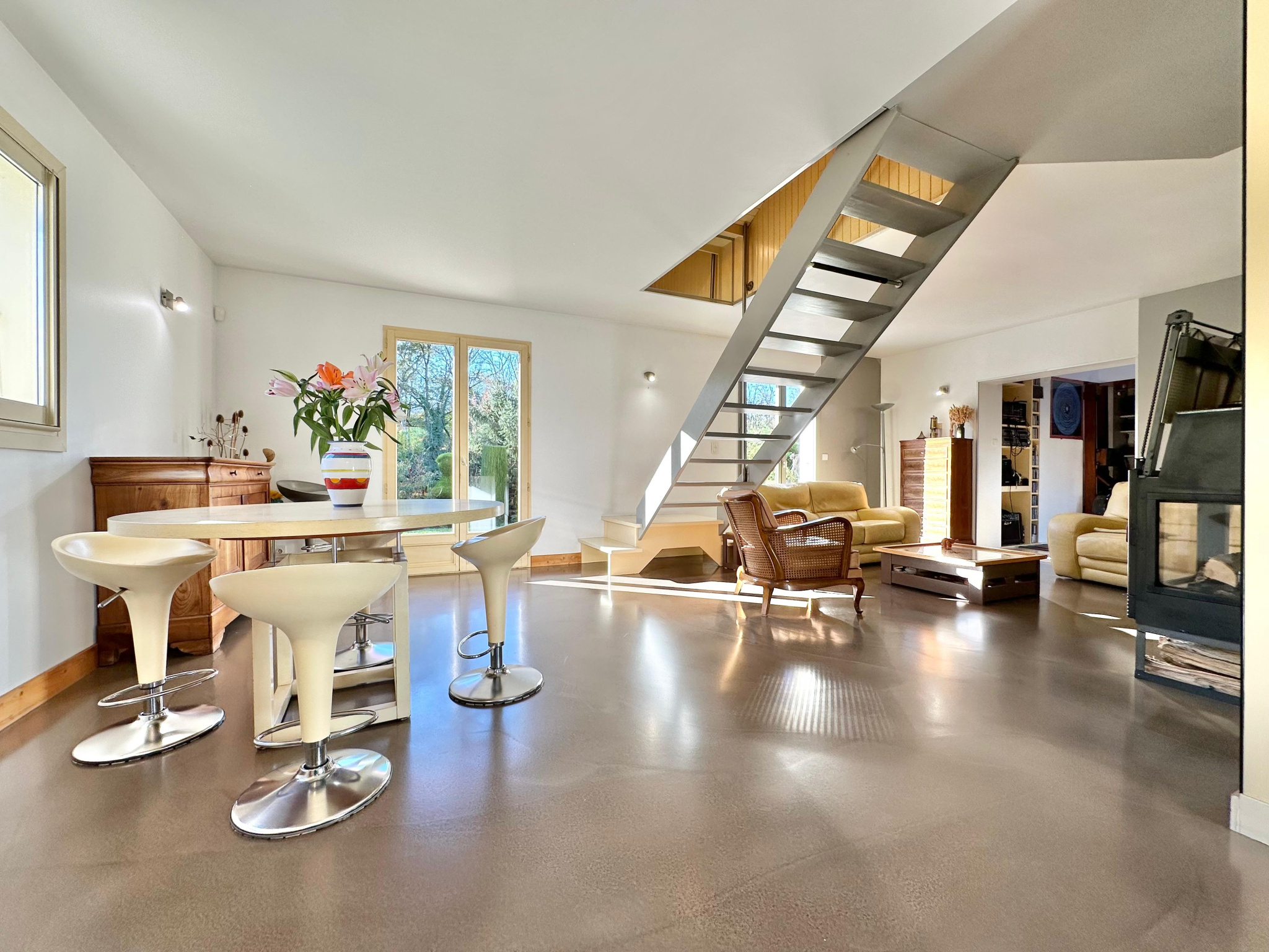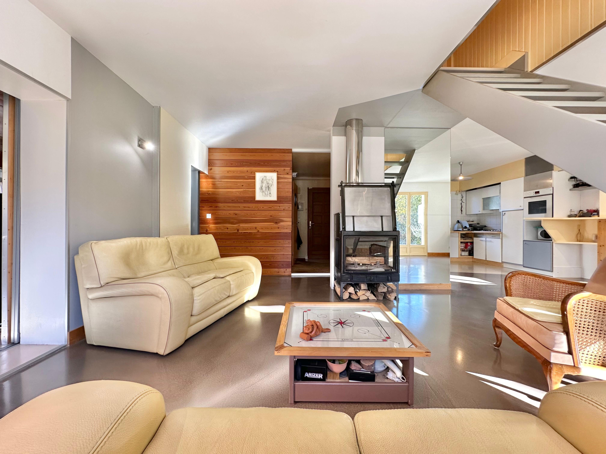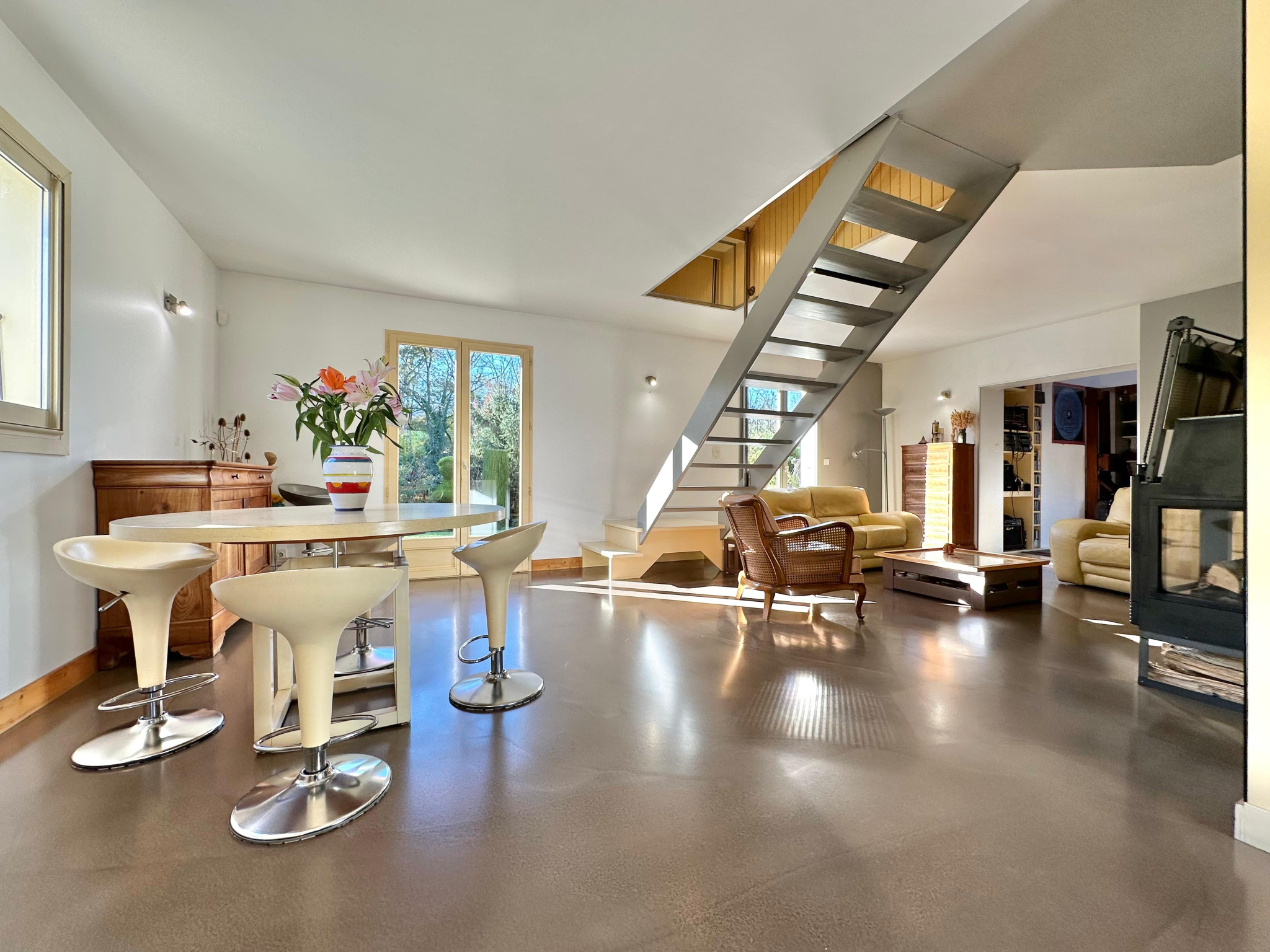 Située dans un quartier résidentiel recherché de Rumilly (74150), cette maison d’architecte séduit par son environnement verdoyant, son architecture atypique et son confort moderne.