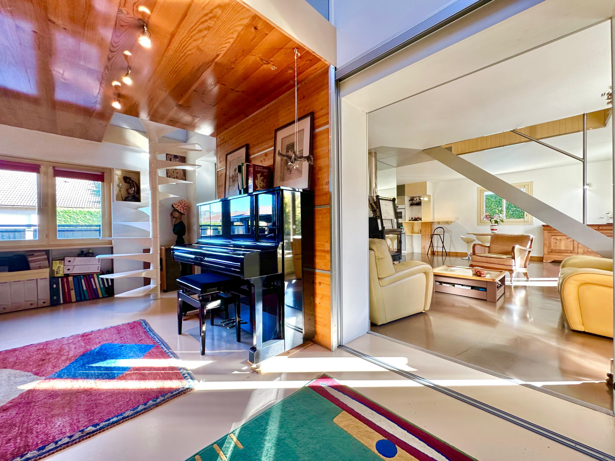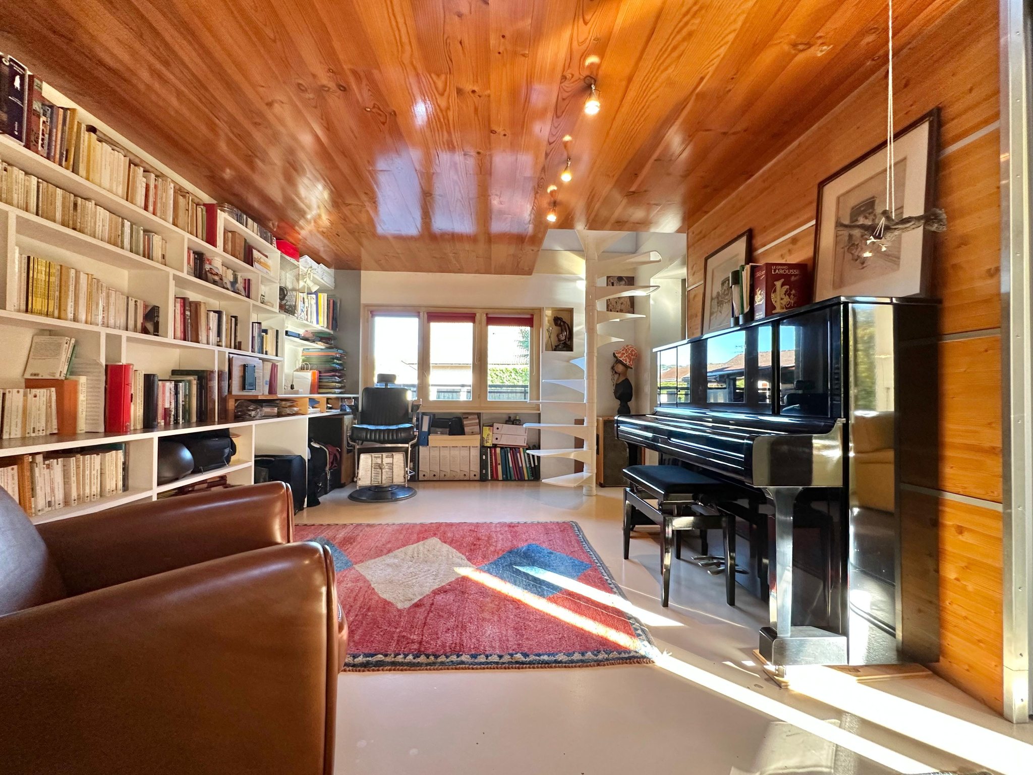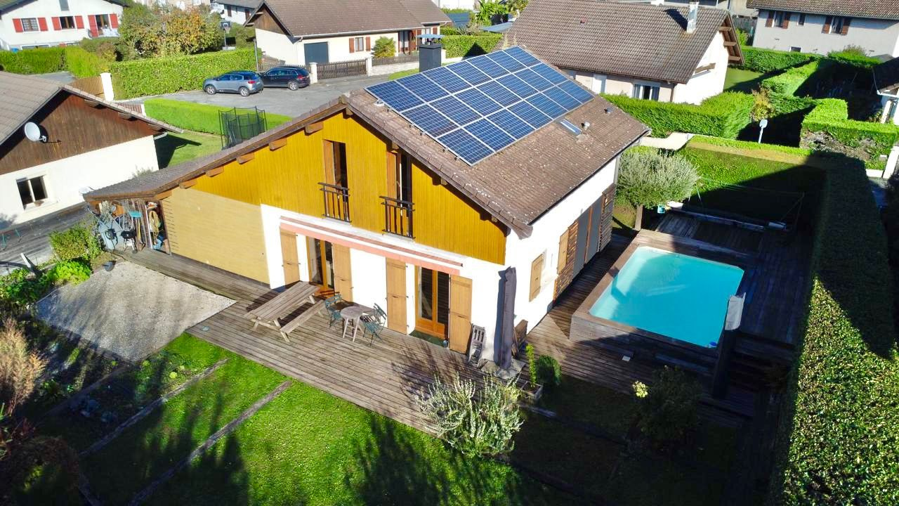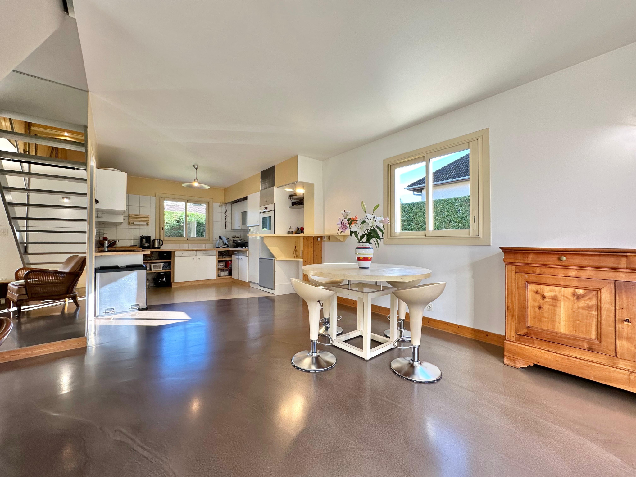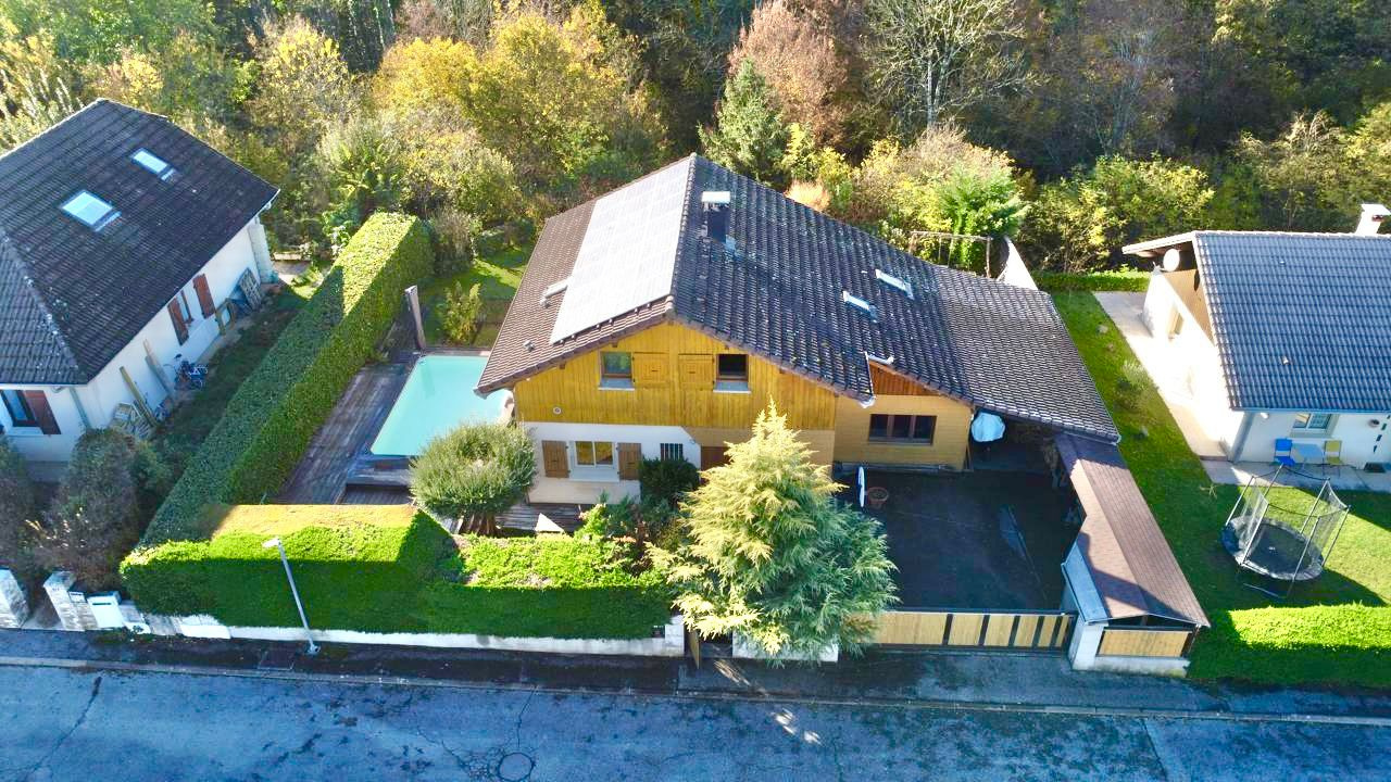 Située dans un quartier résidentiel recherché de Rumilly (74150), cette maison d’architecte séduit par son environnement verdoyant, son architecture atypique et son confort moderne.