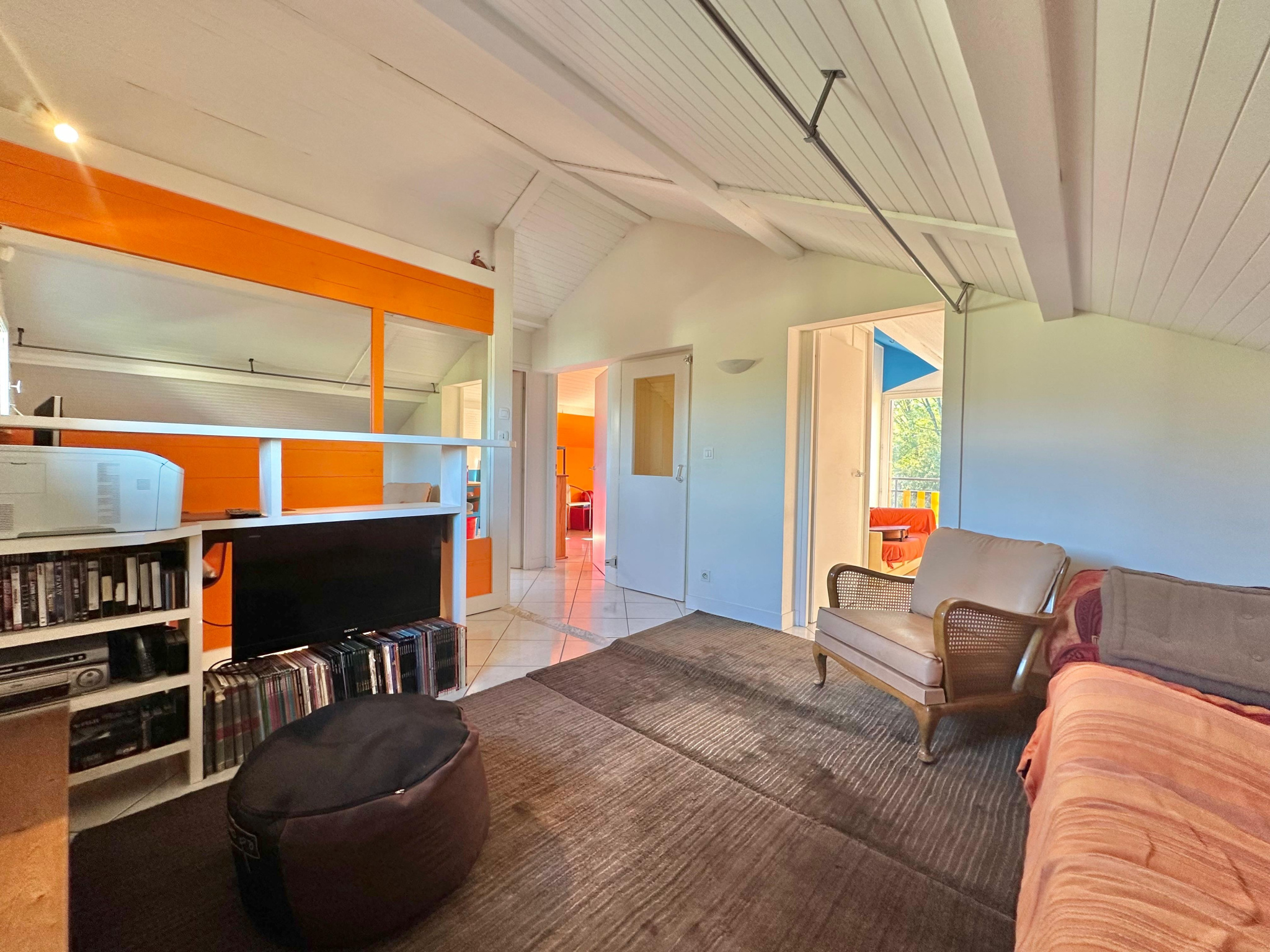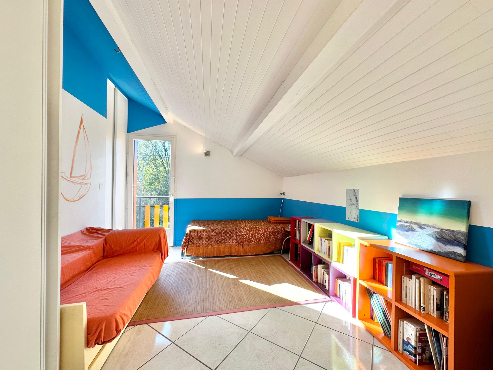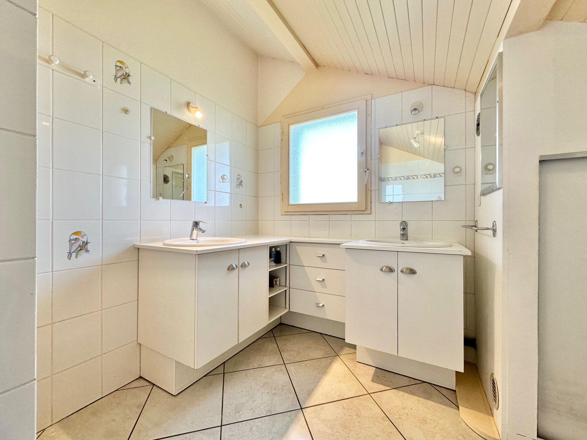 Au rez-de-chaussée, vous découvrirez une belle pièce de vie lumineuse comprenant une cuisine ouverte sur le salon et la salle à manger, offrant un espace convivial et chaleureux. Une grande bibliothèque avec mezzanine vient compléter cet étage ; elle peut aisément être transformée en bureau ou chambre supplémentaire, selon vos besoins. Ce niveau dispose également d’une salle de douche et d’un WC séparé.
