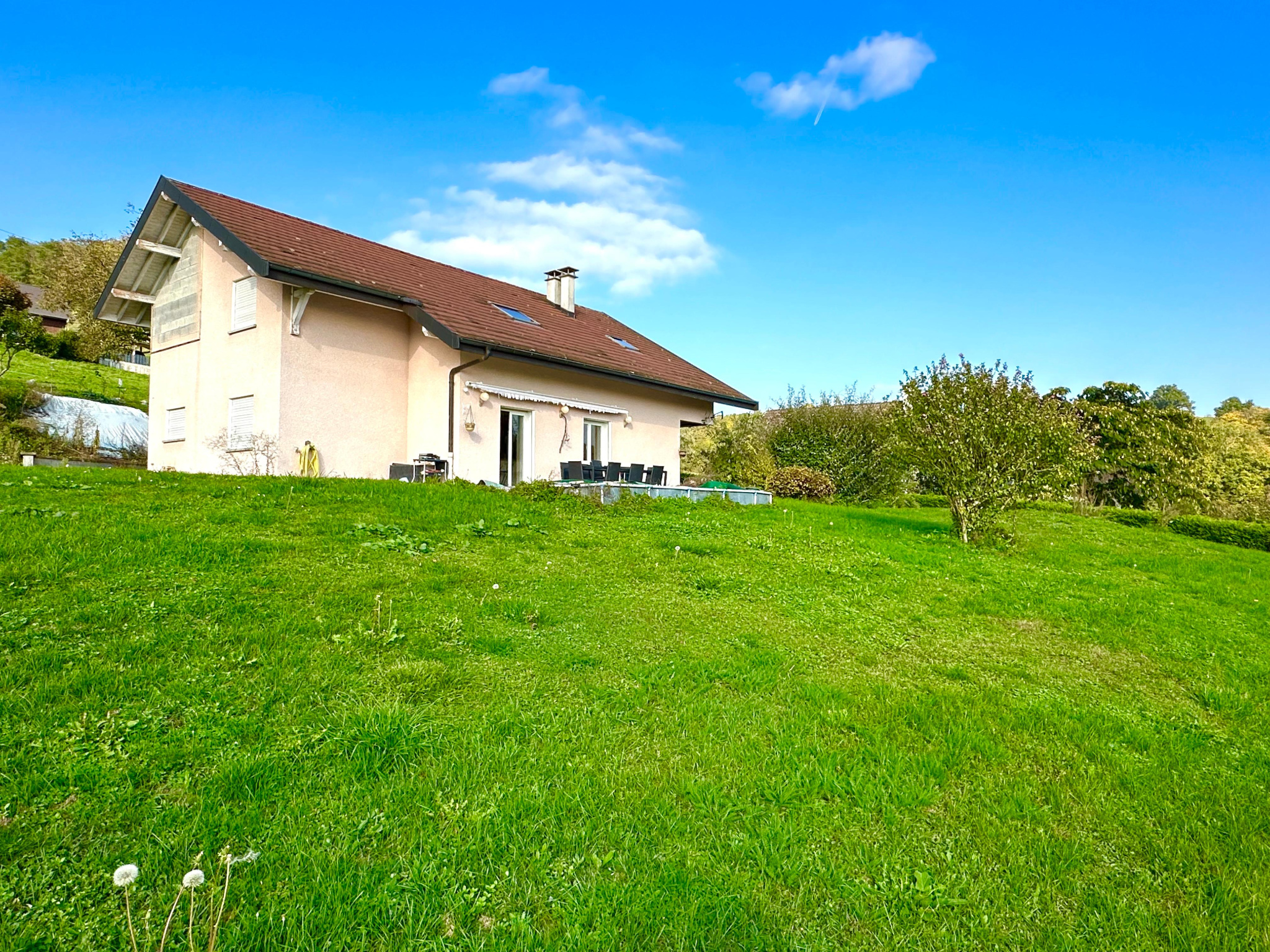 Située à Vallières-sur-Fier, dans un secteur calme et verdoyant, cette belle maison de 140 m2 habitables repose sur un terrain de 1 500 m2, piscinable et constructible. Parfaitement exposé et offrant une vue dégagée sur la campagne, le terrain présente de nombreuses possibilités d’aménagement, dont la possibilité de détacher une parcelle constructible pour un futur projet immobilier.