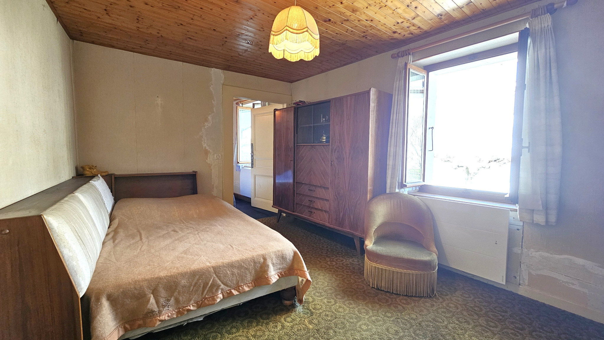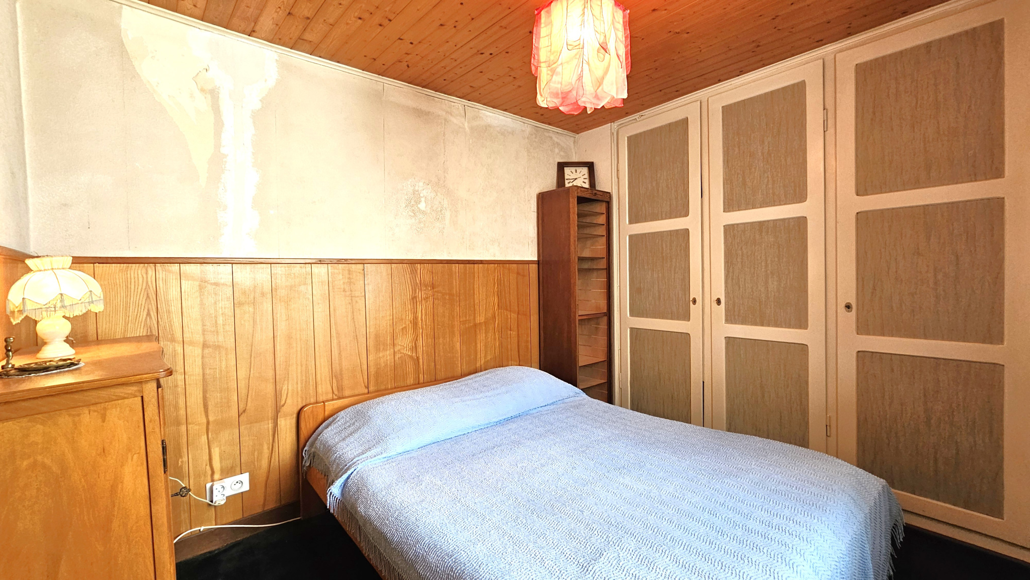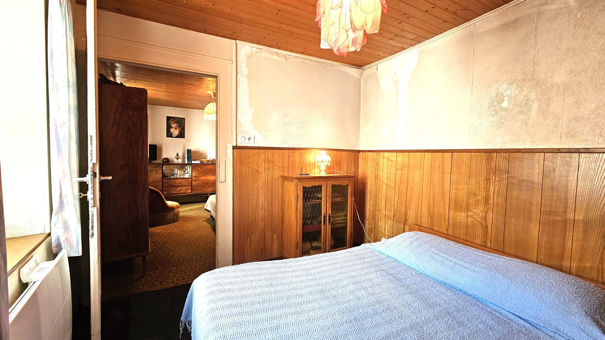 À l’étage, une grande chambre pouvant être aménagée en salon, ainsi qu’une seconde chambre avec placard, accessible depuis la chambre principale.