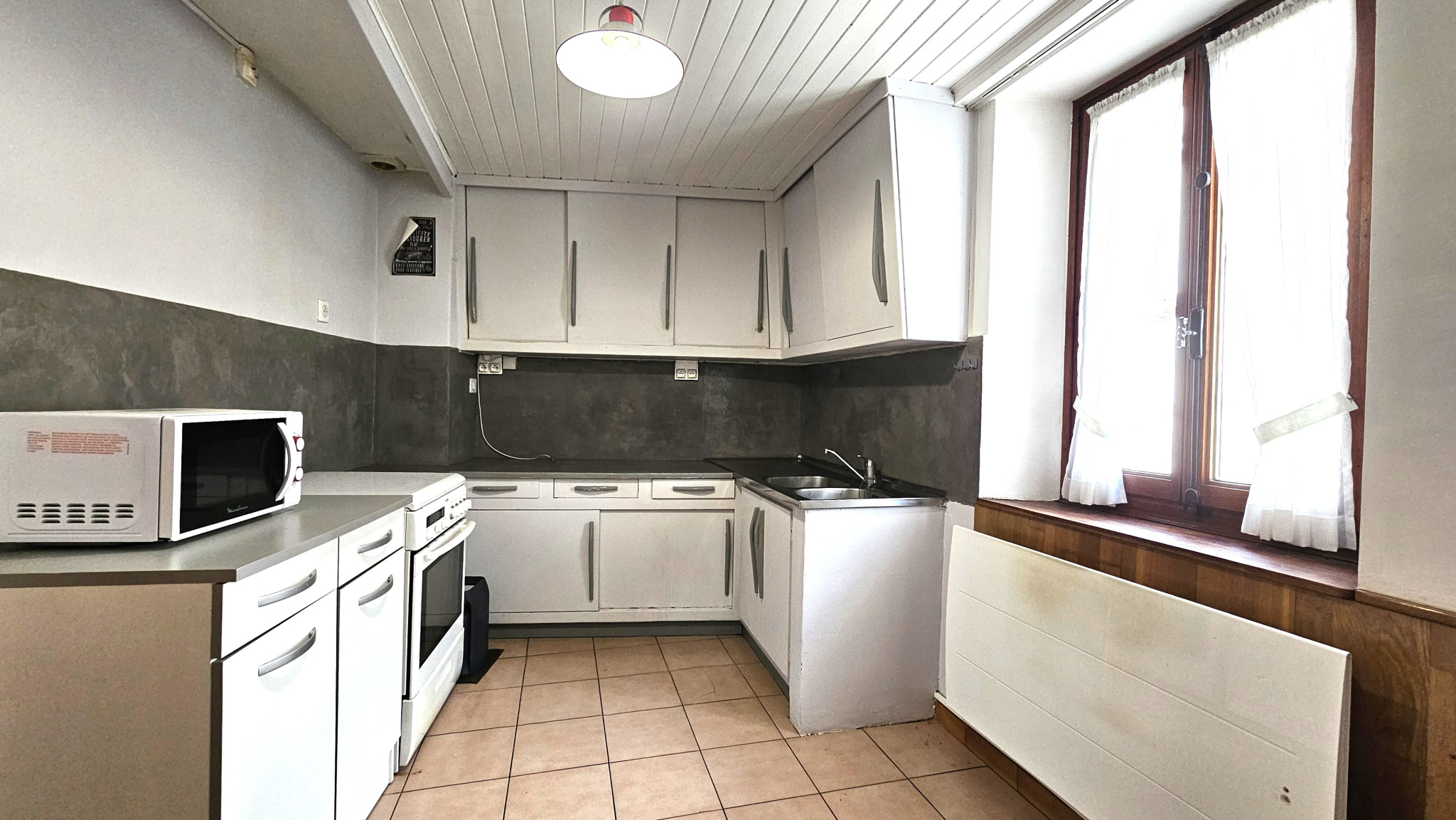 Maison bâtie sur deux niveaux + cave en sous-sol, d’une surface au sol totale de 87m2 et de 40m2 habitable + place de parking extérieure.